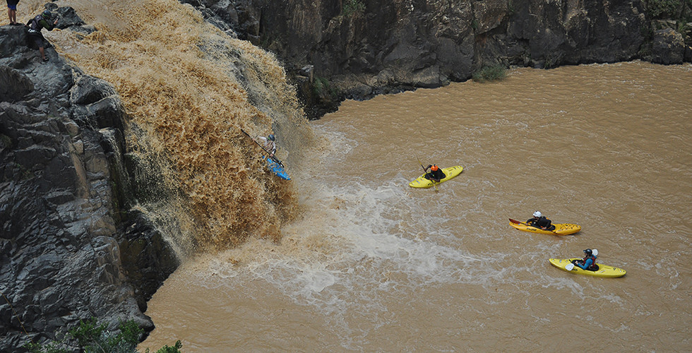 As is typical in this region clouds were building and we could here thunder in the distance, a clear sign that we need to get a move on and head down to the final a waterfall a 6m drop that would test all the skills the guys practiced during the first part of the day. Unfortunately with the lightning around us we could only have a quick look and run the falls once but everybody had good lines and great landings. We quickly made our way to the takeout to celebrate with a beer and head home to camp.